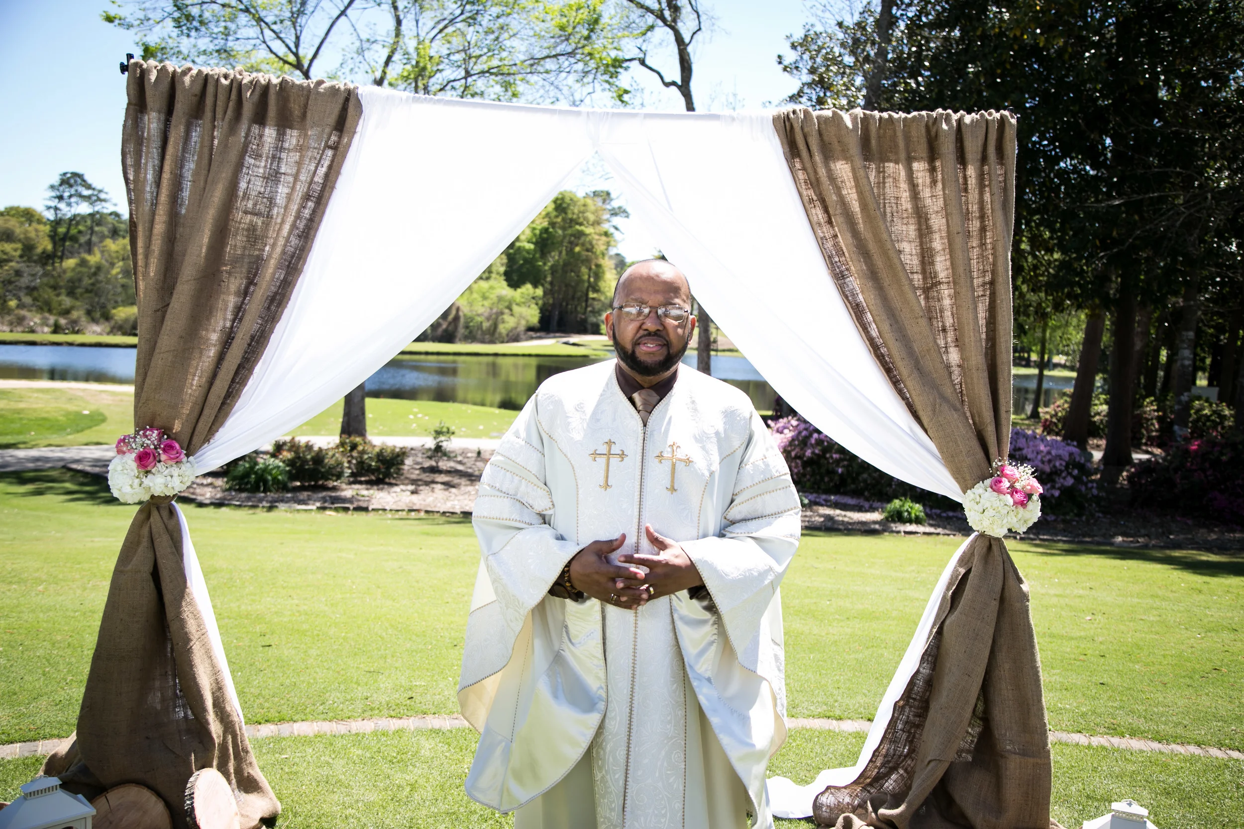 Our pastor, Bishop Alfred A. Owens, Jr. of Greater Mount Calvary Holy Church in Washington, D.C., traveled down to South Carolina to officiate our wedding ceremony.