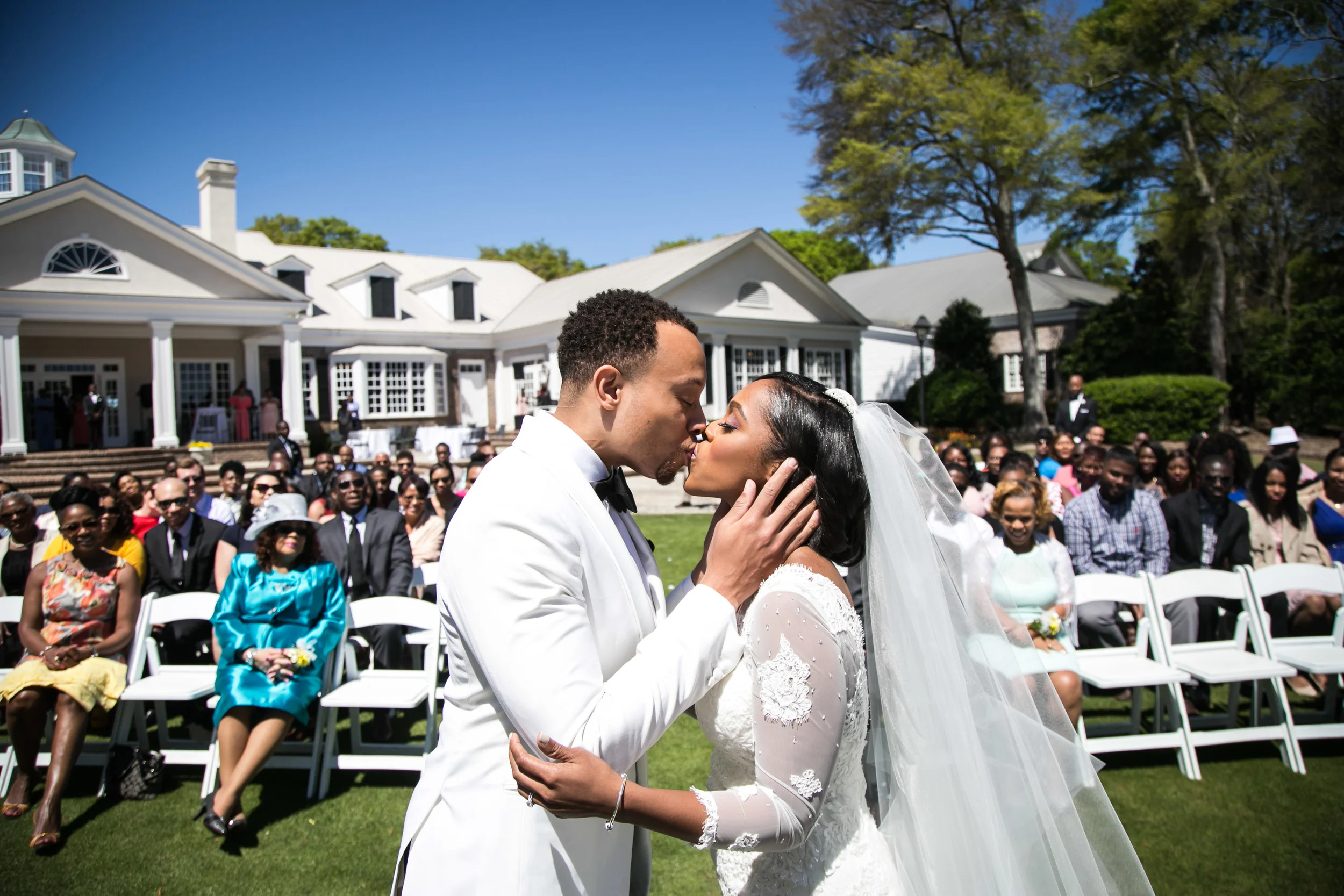 We shared our first kiss as husband and wife after Etienne's Aunt Neomie and Cousin Jenee sang an acappella version of The Lord's Prayer.